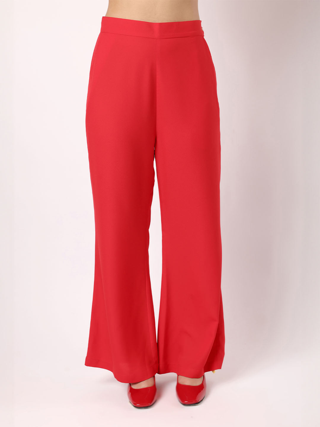 Turn heads in this striking red organza co-ord set, featuring a statement frill top that adds drama and flair. Paired with sleek matching trousers, it's the perfect ensemble for a bold and stylish entrance.